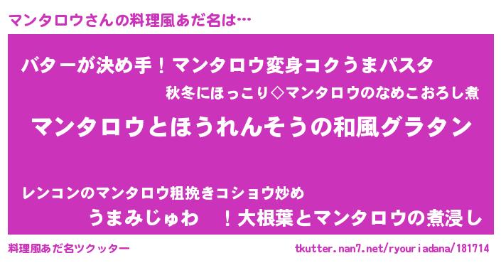 | 男性向けラノベタイトル風あだ名 | 『転生したらマンタロウだった件』 |