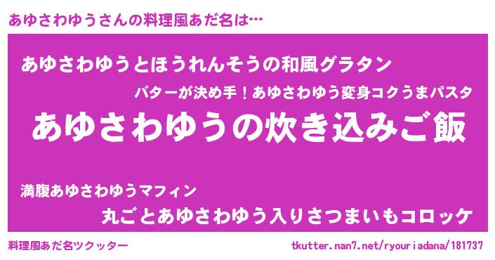 | ヘコむあだ名 | 『あゆさわゆう(小並感)』『あゆふぇ~』 |