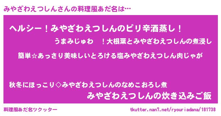| 意味不明あだ名 | 『永久保存みやざわえつしん』 |