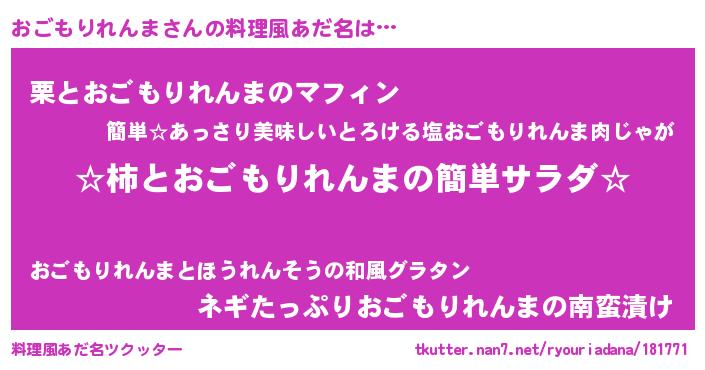 | 胡散臭い通販商品みたいなあだ名 | 『必ず成功する水晶球…その名も「おごもりれんま」』 |
