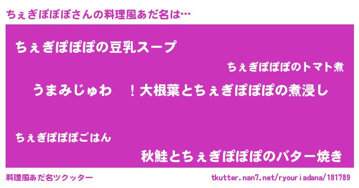 意味不明あだ名 | 『ちぇぎぽぽぽフォーエバー』 |