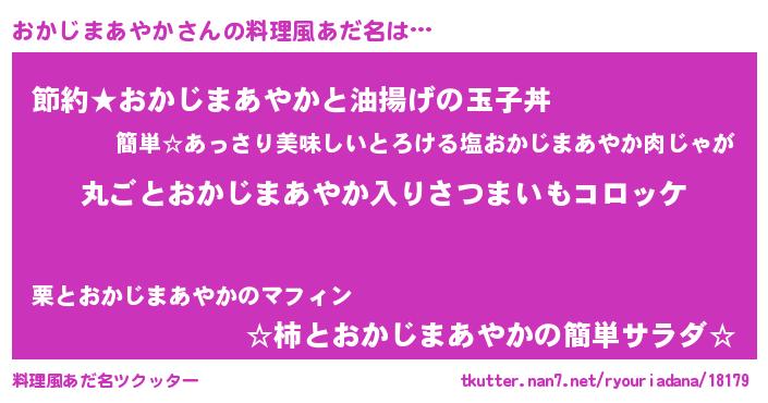| 意味不明あだ名 | 『住所不定無職おかじまあやか(12歳)』 |