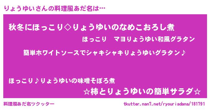 | ヘコむあだ名 | 『りょぷりん』『りょっふぃ~』 |