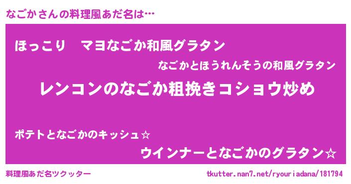 | 胡散臭い通販商品みたいなあだ名 | 『ガンによく効く高麗人参…その名も「なごか」』 |