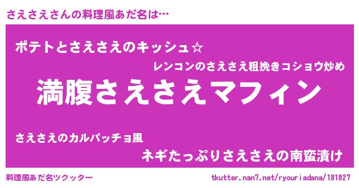 | ヒーロー風カッコイイあだ名 | 『ネオサエサエ』『魔戒騎士サエ』 |