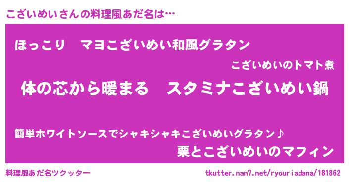 | 意味不明あだ名 | 『こざいめいフォーエバー』 |