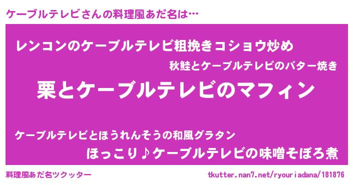 | 胡散臭い通販商品みたいなあだ名 | 『ガンによく効くアガリクス…その名も「ケーブルテレビ」』 |