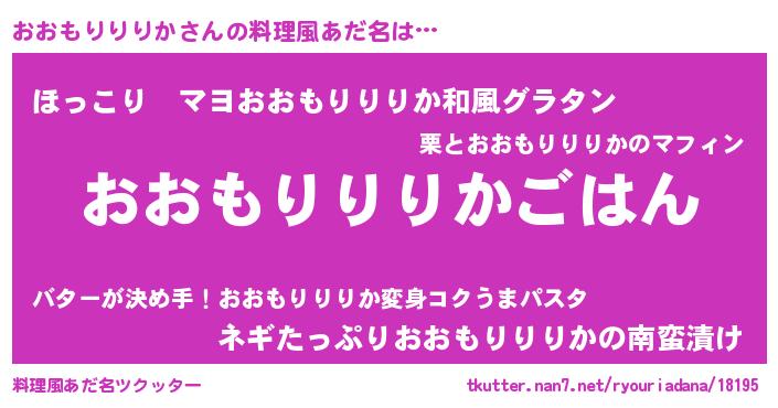 | 欧米人風あだ名 | 『トリンドルおおもりりりか』 |
