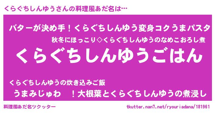 | 意味不明あだ名 | 『しいたけ科くらぐちしんゆう属』 |