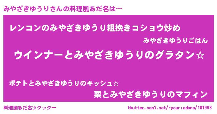 | ファンタジー風あだ名 | 『エターナルミヤザキユウリー』 |