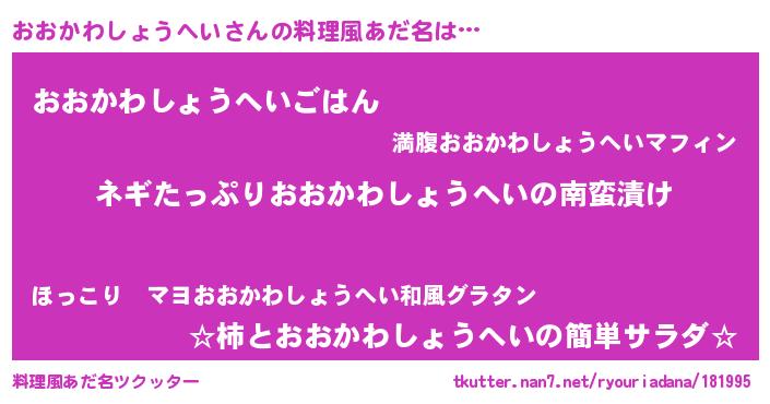 | ヘコむあだ名 | 『おおにー』『おおかわしょうへい(震え声)』 |