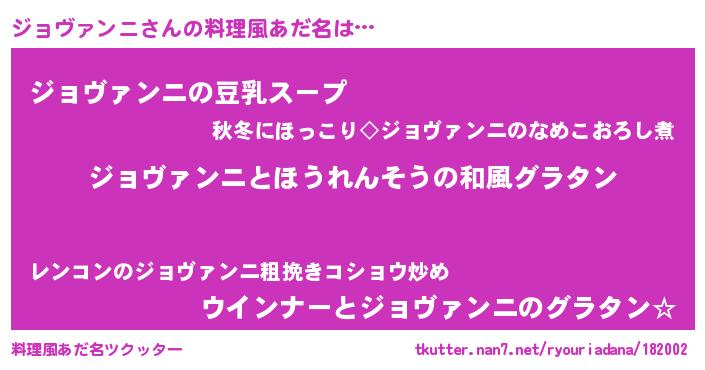 | 女子向けラノベタイトル風あだ名 | 『ジョヴァンニの玉の輿計画!』 |
