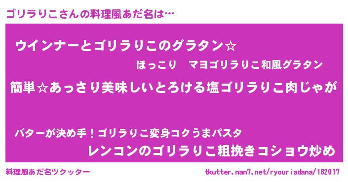 | 胡散臭い通販商品みたいなあだ名 | 『前代未聞の水素水…その名も「ゴリラりこ」』 |
