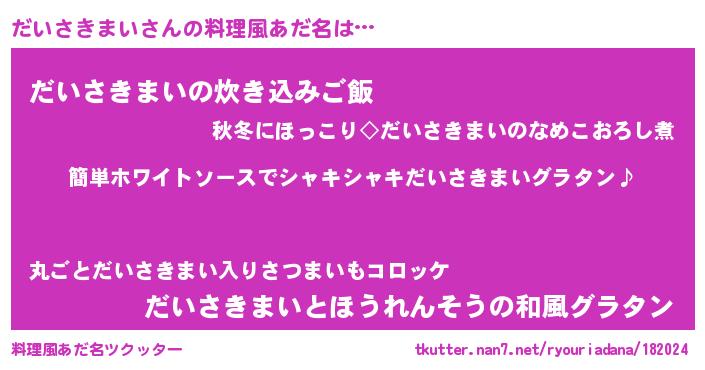 | 男性向けラノベタイトル風あだ名 | 『だいさきまいの嫁は女の子じゃないと思った?』 |