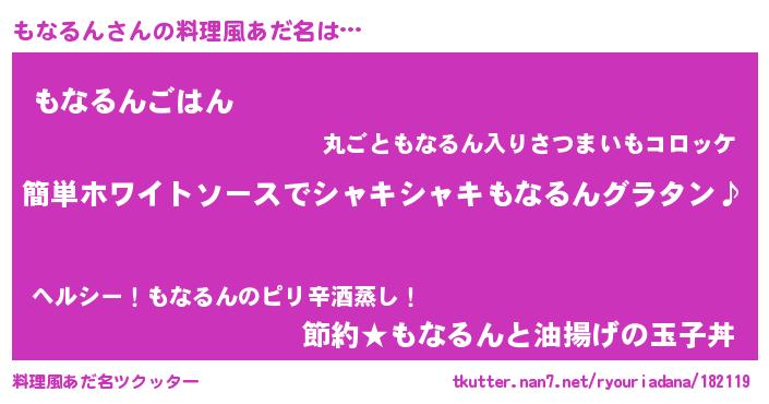 | 男性向けラノベタイトル風あだ名 | 『もなるんの嫁は女の子じゃないと思った?』 |