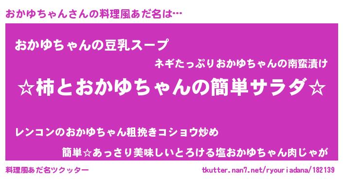 | 欧米人風あだ名 | 『おかゆちゃん・ステッグマイヤー』 |