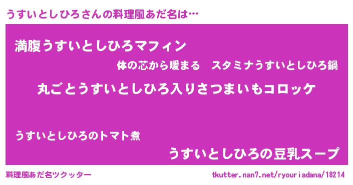 | ヘコむあだ名 | 『うすいとしひろ(苦笑)』『うすお』 |
