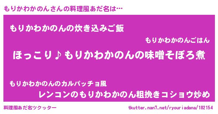 | 女子向けラノベタイトル風あだ名 | 『(仮)もりかわかのんのやんごとなき事情』 |