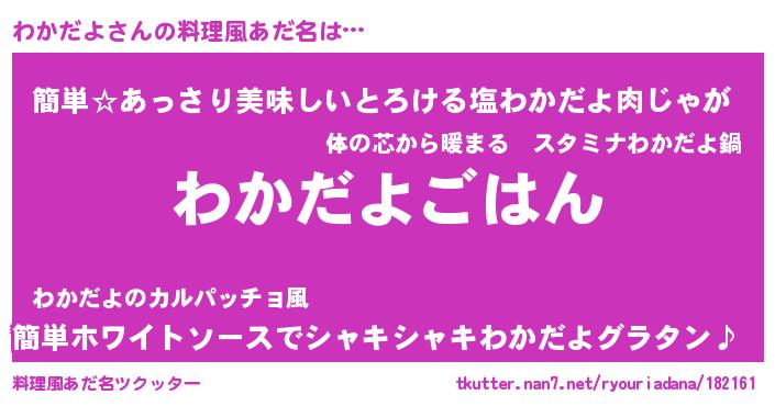 | 男性向けラノベタイトル風あだ名 | 『ワカダヨスレイヤー』 |