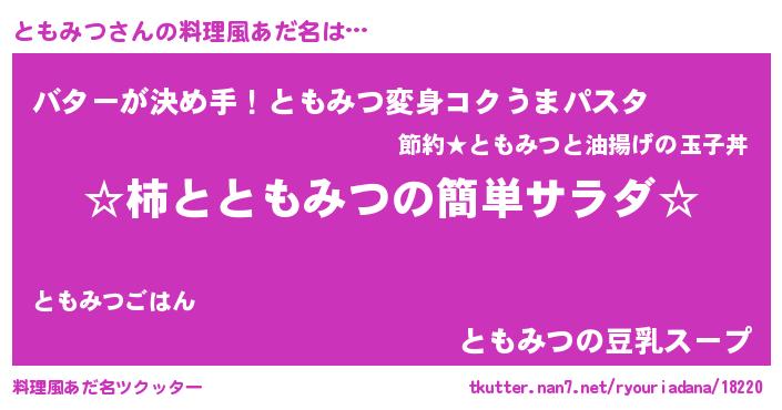 | ヘコむあだ名 | 『ともを』『ともふぇ~』『豆乳』 |