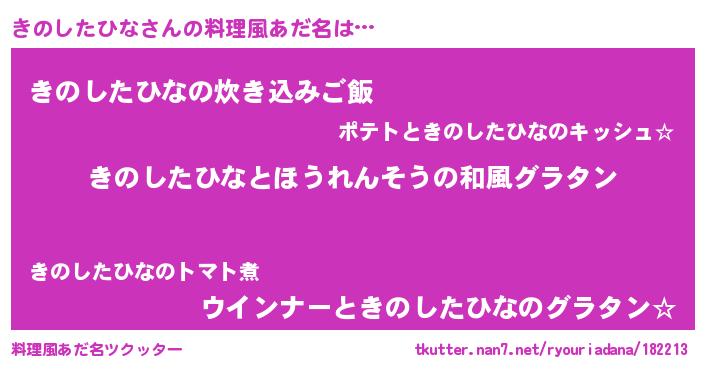 | 女子向けラノベタイトル風あだ名 | 『きのしたひなの玉の輿計画!』 |