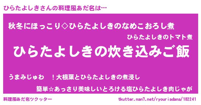 | ヘコむあだ名 | 『ひらたよしき(笑)』『なまこ酢』 |