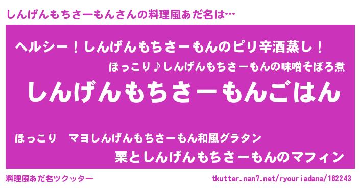 | 男性向けラノベタイトル風あだ名 | 『シンゲンモチサーモンスレイヤー』 |