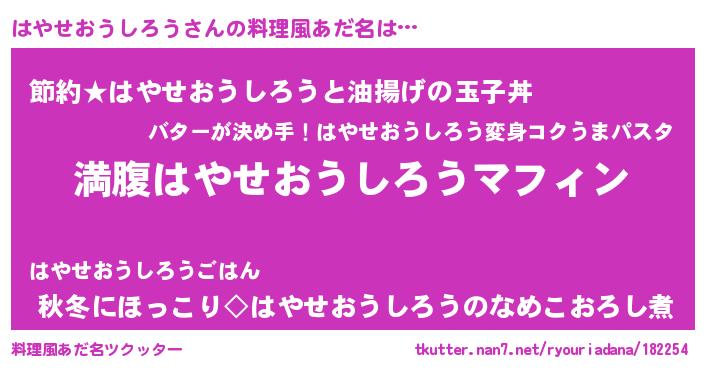 | 意味不明あだ名 | 『永久保存はやせおうしろう』 |