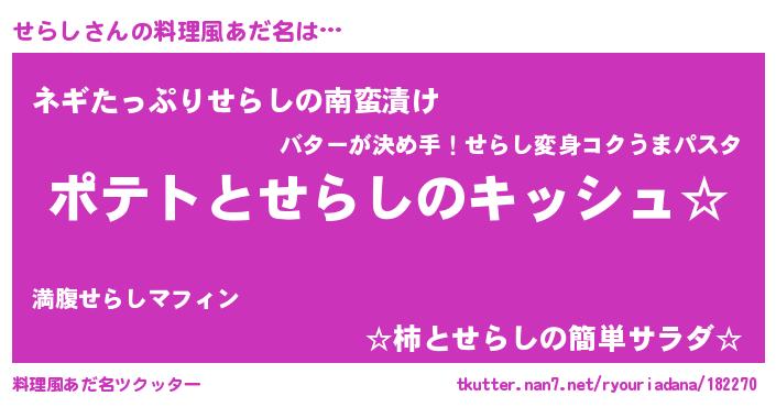 | 胡散臭い通販商品みたいなあだ名 | 『伝統あるサプリメント…その名も「せらし」』 |