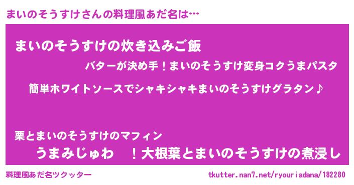 | 男性向けラノベタイトル風あだ名 | 『まいのそうすけの嫁は女の子じゃないと思った?』 |