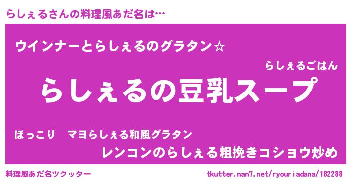 | ヘコむあだ名 | 『らしを』『豆乳』『らしふぇ~』 |