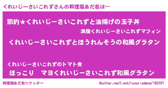 | 欧米人風あだ名 | 『トリンドルくれいじーさいこれず』 |