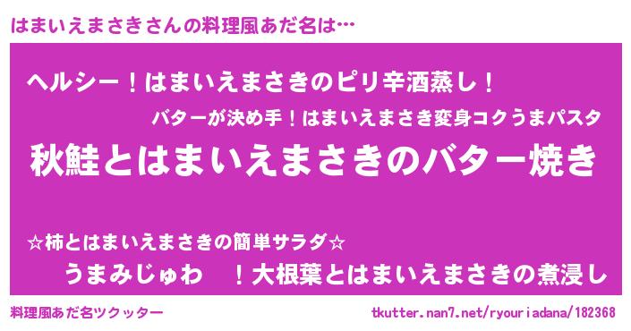 | 胡散臭い通販商品みたいなあだ名 | 『来世でも幸せになれる水素水…その名も「はまいえまさき」』 |