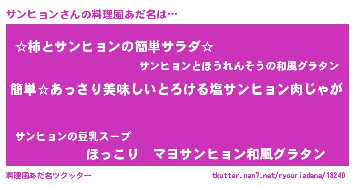 | 胡散臭い通販商品みたいなあだ名 | 『前代未聞の健康食品…その名も「サンヒョン」』 |