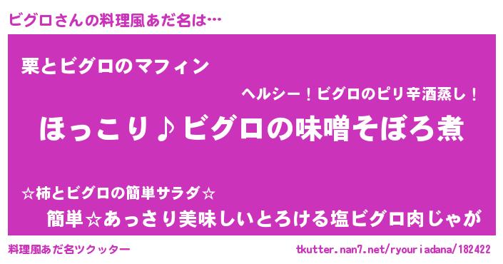 | 男性向けラノベタイトル風あだ名 | 『ビグロの憂鬱』『はたらくビグロさま!』 |
