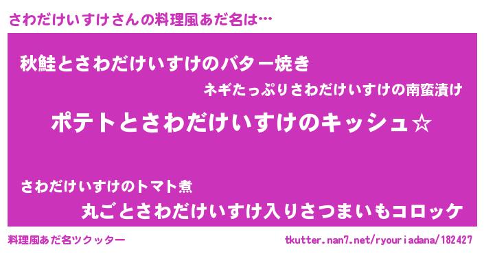 | ポケモン風あだ名 | 『ヒサワダケイスケ』『ゼニサワ』 |