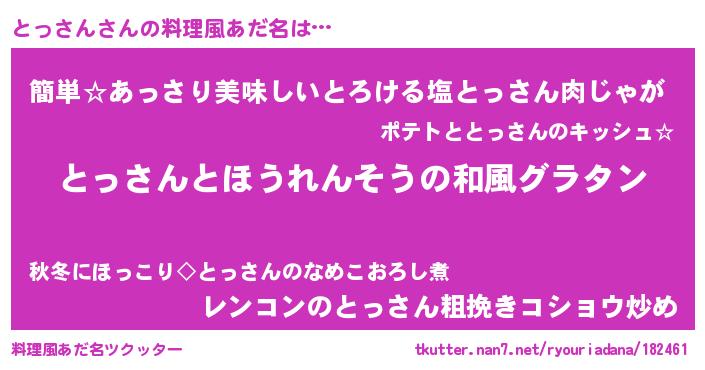 | ヒーロー風カッコイイあだ名 | 『ネオトッサン』『究極戦士トッサン』 |