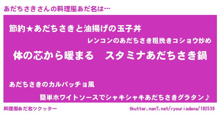 | 女子向けラノベタイトル風あだ名 | 『あだちさきの雑貨屋さん』 |