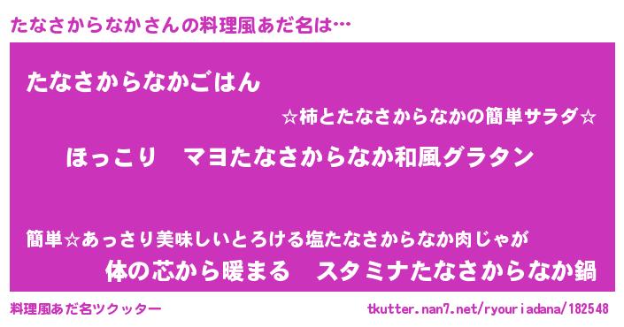 | 意味不明あだ名 | 『住所不定無職たなさからなか(65歳)』 |