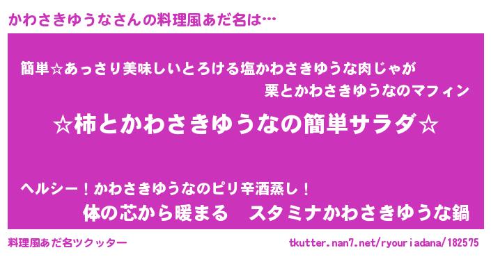 | ヒーロー風カッコイイあだ名 | 『ネオカワサキユウナ』『銀牙騎士カワ』 |