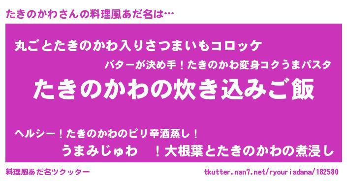 | ヒーロー風カッコイイあだ名 | 『仮面タキダー』『天空の使者たきのかわ』 |