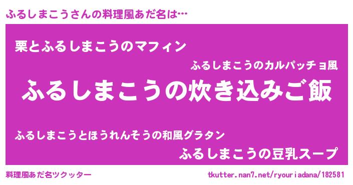 | 胡散臭い通販商品みたいなあだ名 | 『全米が絶賛したサプリメント…その名も「ふるしまこう」』 |