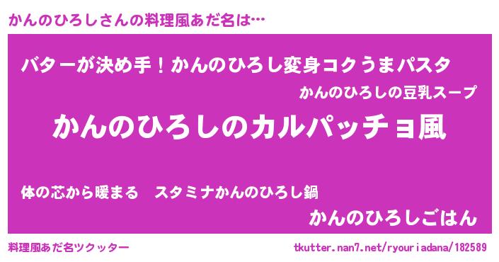 | 男性向けラノベタイトル風あだ名 | 『魔弾の王とかんのひろし』 |