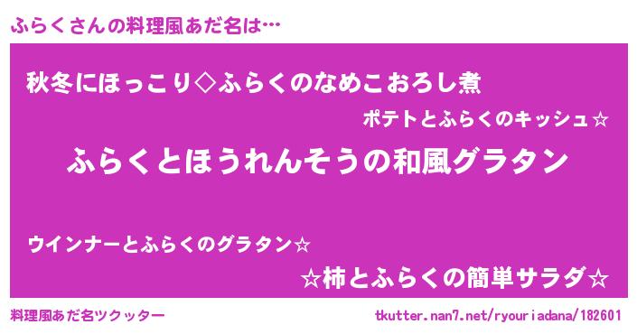 | ピコ太郎風あだ名 | 『フラ太郎』『ピフ四郎』『フコ一郎』 |