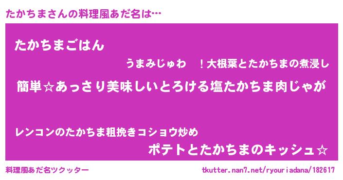 | 意味不明あだ名 | 『永久保存たかちま』『自称たかちま』 |