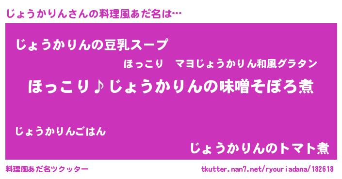 | 男性向けラノベタイトル風あだ名 | 『じょうかりんの憂鬱』 |