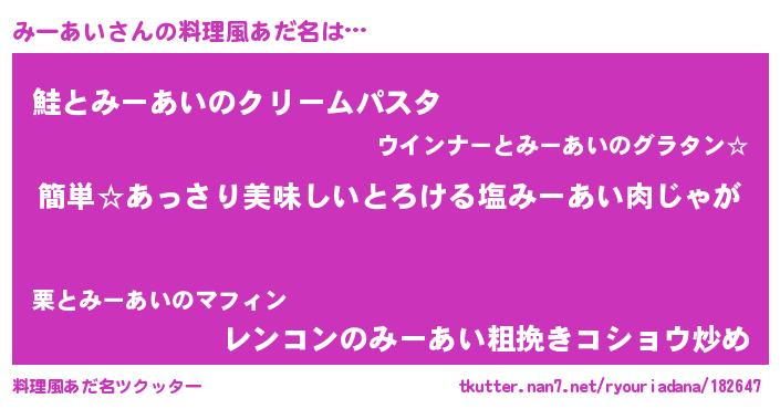 | 意味不明あだ名 | 『永久保存みーあい』『自称みーあい』 |