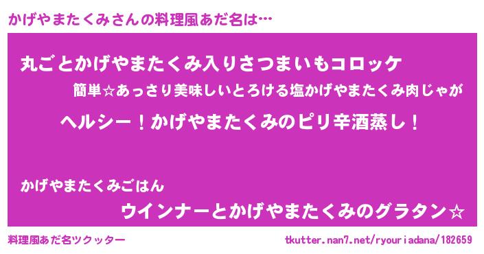 | 意味不明あだ名 | 『自称かげやまたくみ』 |
