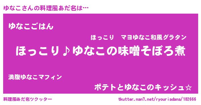 | ピコ太郎風あだ名 | 『ユコ二郎』『ユナ三郎』『ピコユ郎』 |