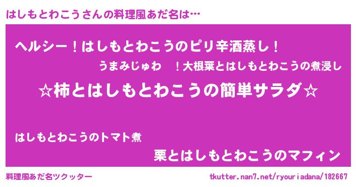 | ヘコむあだ名 | 『つくし』『はしもとわこう(苦笑)』 |